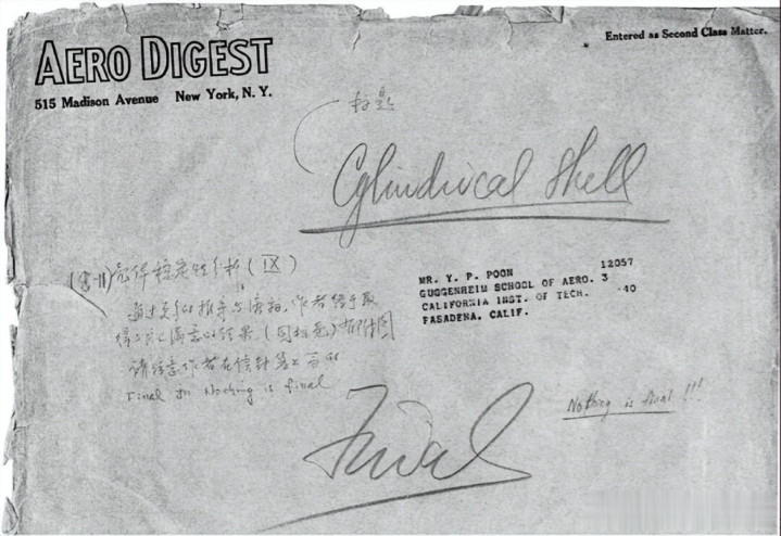 1936年他拿到航空工程硕士后,觉得光靠经验不行,必须搞理论研究,就去考了加州理工学院。